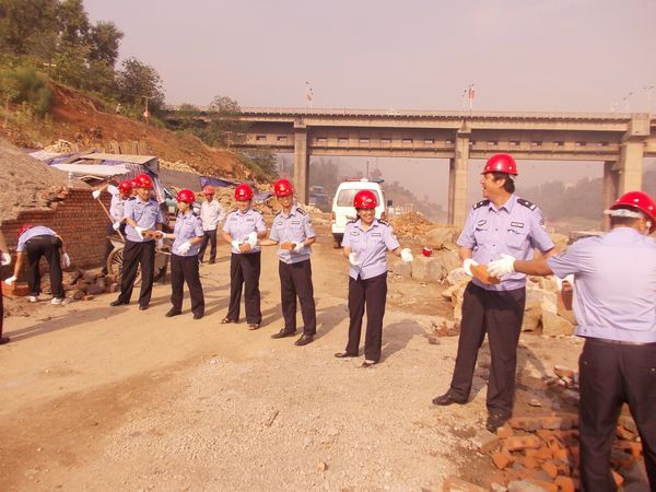 在此之前,宝鼎中路派出所的民警也同样在施工现场义务劳动过,组织这样的活动,主要目的是为了加强警企之间的联系,达到警企共建和谐工地、警民一条心,共同为丽攀高速公路更快、更好的建设而努力。