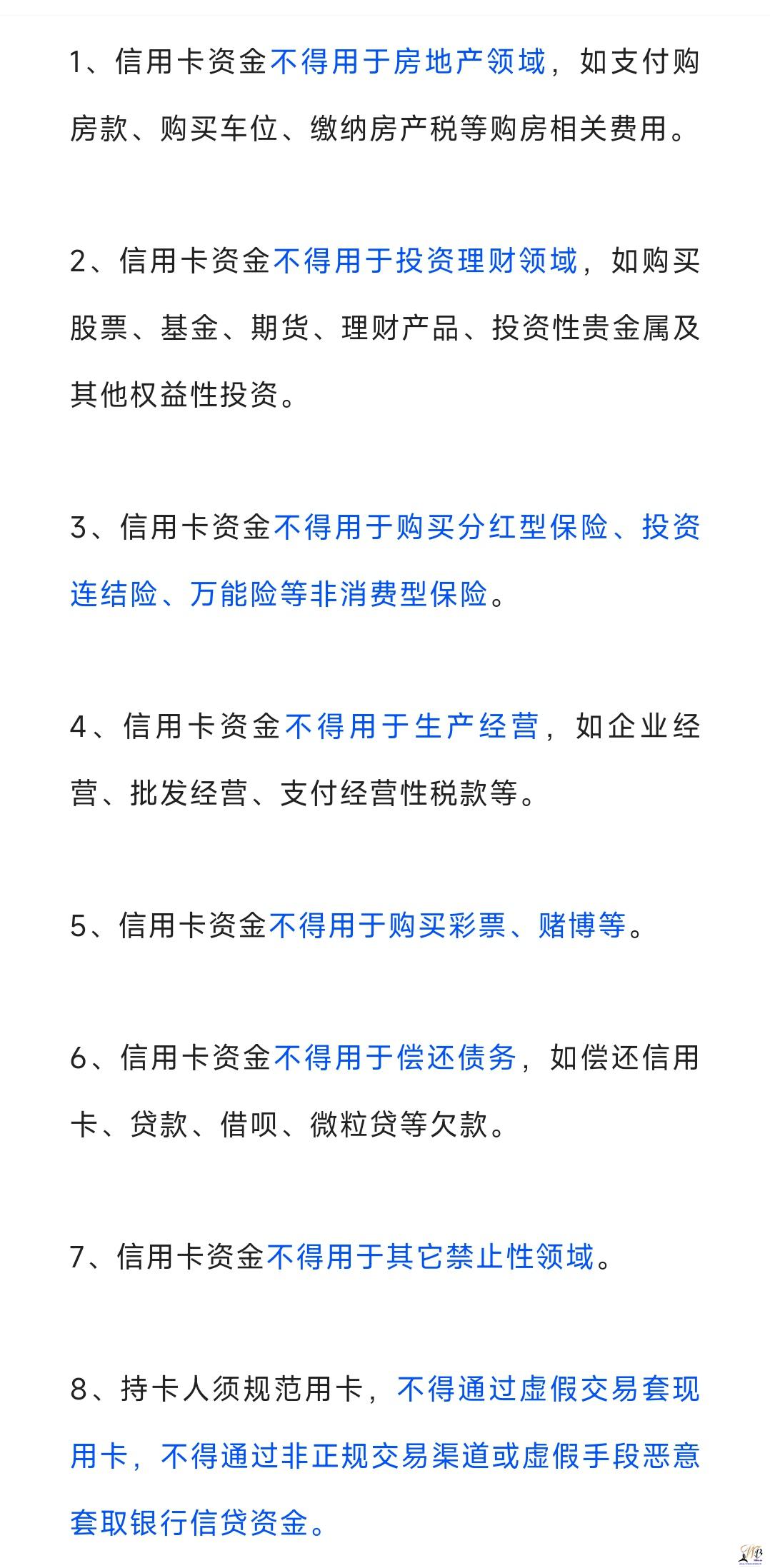 或其他非消费领域,则可能导致交易失败。且银行有权对您信用卡账户采取包括但不限于降低授信额度、止付、冻结、提前结清、限制等一项或多项风险管理措施,同时银行有权要求持卡人提供交易发票等交易凭证材料,用以核实交易真实性。