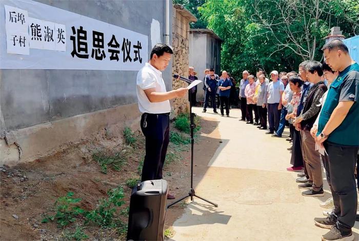 张文强在悼词里这样介绍熊淑英,“她的一生是勤劳的一生⋯⋯她养育了7个子女,是受人尊敬的好邻居、好村民。”他也没有放过这个机会,又一次为殡葬改革做普及,“为逝者办追思会是社会发展的需要,也是精神文明和移风易俗的需要。这种形式简短、隆重,有仪式感,是对逝者最大的尊重。”