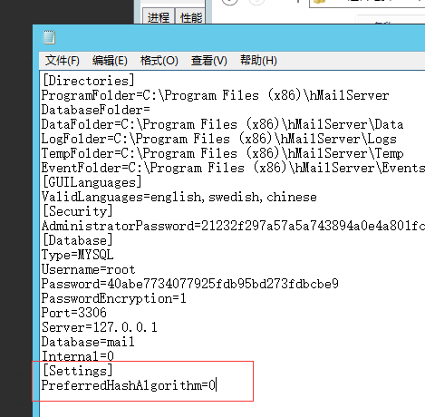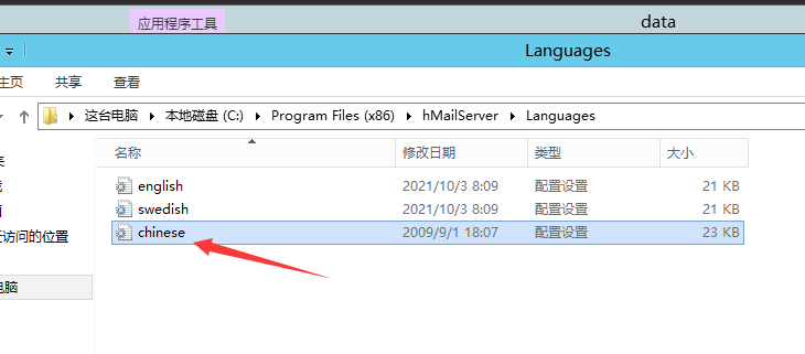 然后打开Bin目录的hMailServer.ini,加上,chinese